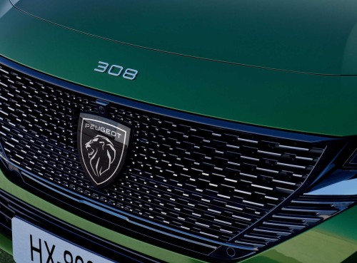 Emblem s sodobno tipografijo se veličastno bohoti na okrasni maski. Na pokrovu motornega prostora pa lahko opazimo monogram 308, ki skupaj s celotnim prednjim delom naznanja preporod.
