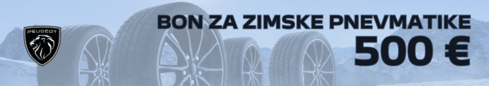 ***Ponudba Bon za zimske pnevmatike velja za fizične osebe za vsa prodana (podpis prodajne pogodbe) in dobavljena osebna vozila Peugeot v obdobju od 1.11. do vključno 31.12.2025. Vrednost bona ob nakupu novega vozila Peugeot 208, 308, 308 SW in 2008 je 300 € (z DDV), ob nakupu novega vozila 408, 3008 in 5008 pa 500 € (z DDV). Ponudba ne velja za modela Rifter in Traveller. Bon je mogoče vnovčiti samo za nakup in premontažo zimskih pnevmatik in sicer pri pooblaščenem prodajalcu Peugeot, kjer je bilo vozilo kupljeno in dobavljeno. Bona ni možno zamenjati za gotovino ali drugi izdelek. Bon ni prenosljiv na drugo osebo. V primeru, da je vrednost zimskih pnevmatik in premontaže večja ko je vrednost bona, razliko doplača kupec. V primeru, da je vrednost zimskih pnevmatik in premontaže manjša od vrednosti bona, se kupcu razlika ne povrne in je ni možno zamenjati za drug izdelek. Velja za vozila s termičnim in električnim motorjem.