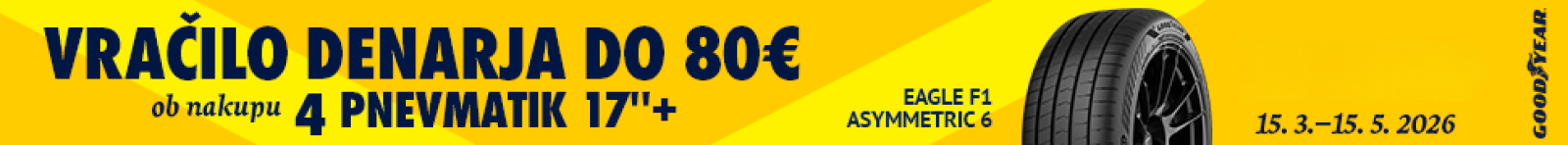 - za nakup pnevmatik v velikosti 19'' boste prejeli denarno vračilo v vrednosti 80 €.