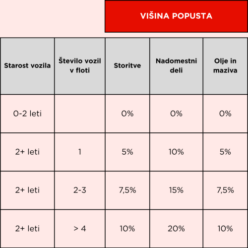 - koristite lahko tudi popuste do 20 % na izbrane originalne nadomestne dele ter do 10 % za olja in maziva znamke TotalEnergies